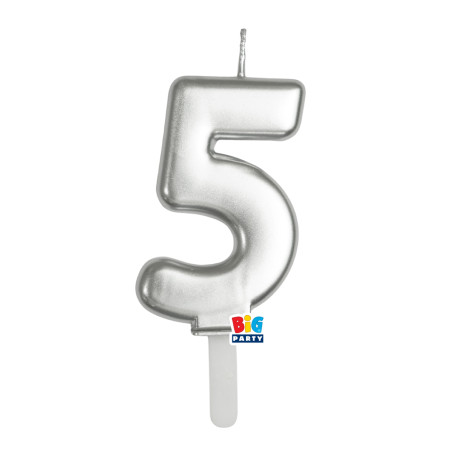 CANDELA numero 5 Cinque ARGENTO Metal - Tiny Plump - candelina in cera per torta