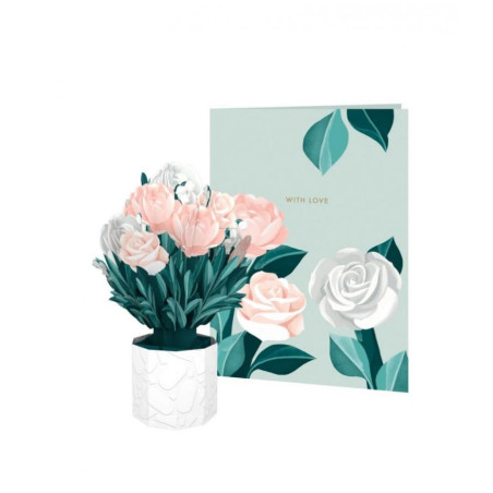 • deliziose e delicate peonie sono disegnate all'esterno del biglietto, che una volta aperto rivela una sorpresa unica. Infatti oltre alla busta e al biglietto dove scrivere, troverai un vero e proprio piccolo bouquet di peonie, contenuto in un vasetto bianco goffrato, che potrai esporre dove vorrai.