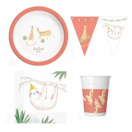 Il kit standard a tema SAFARI è ideale per colorare ed allestire fantastiche feste ed addobbare il tavolo della torta o il tavolo dei bambini con il fortunato festeggiato.