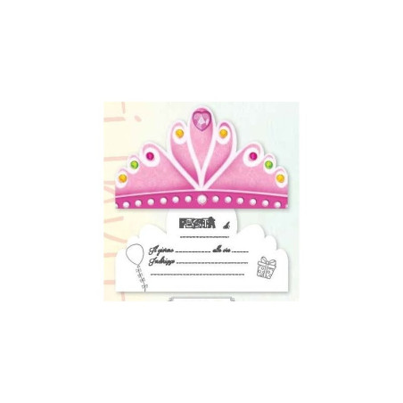 Biglietto invito sagoma corona principesse 6 pz