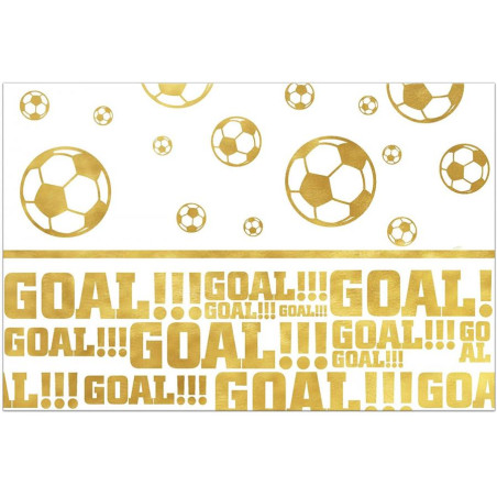 Tovaglia in plastica Calcio Con Pallone e scritta GOAL - Bianco e Oro - 120x180cm