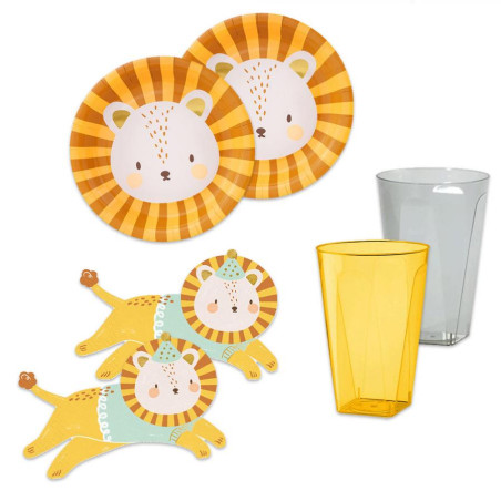 Coordinato tavola Compleanno Leone leoncino piatti bicchieri tovaglioli