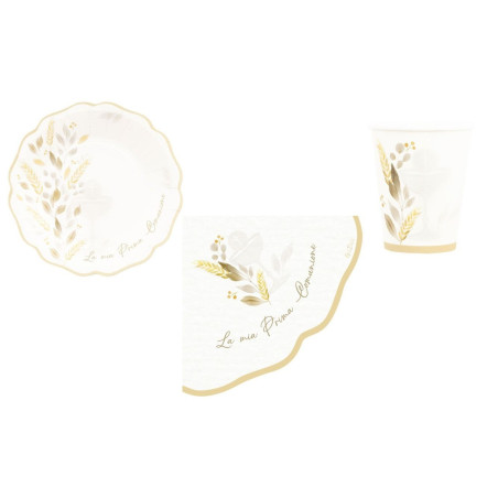 Coordinato feste tavola PRIMA COMUNIONE LIBERTY colore Avorio piatti bicchieri tovaglioli 32 pz