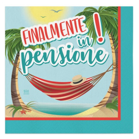 Tovagliolo in carta FINALMENTE IN PENSIONE - MONOUSO Festa - per festa party  del PENSIONATO o della PENSIONATA