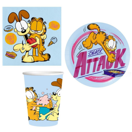 Kit coordinato tavolo GARFIELD - coordinato Tavola MONOUSO Festa - set ideale per 8 OSPITI - per feste party di compleanno e qualsiasi occasione (8 piatti piccoli  + 8 bicchieri + 20 tovaglioli)