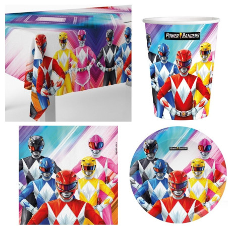Colora la tavola della festa di compleanno di tuo/a figlio/a con il suo personaggio preferito. Coordinato completo per la tavola di Power rangers. Il kit perfetto per festeggiare in allegria e compagnia addobbando la tavola in maniera colorata e divertente.