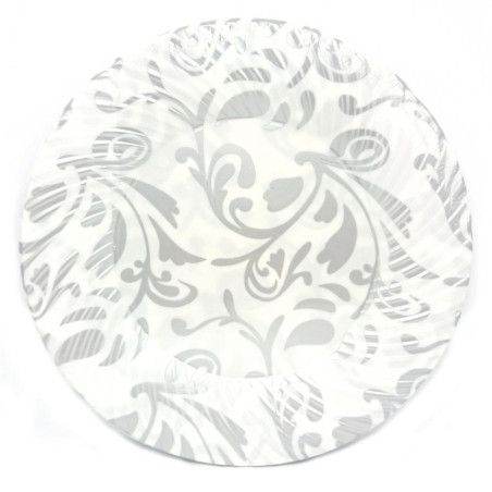 Piatti dessert decorati fantasia ARGENTO in plastica Ø18 - 6 pezzi - addobbo decoro tavola TORTA - cod:8003990681855