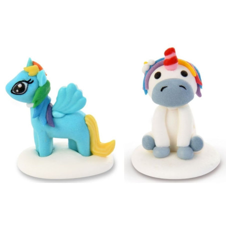 2 Soggetti in zucchero personaggio PONY e UNICORNO 3D - Decorazione per torta e dolci in zucchero