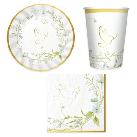 Coordinato tavola CONFIRMATION 1° Comunione, Confessione Pasqua Colomba piatti bicchieri tovaglioli