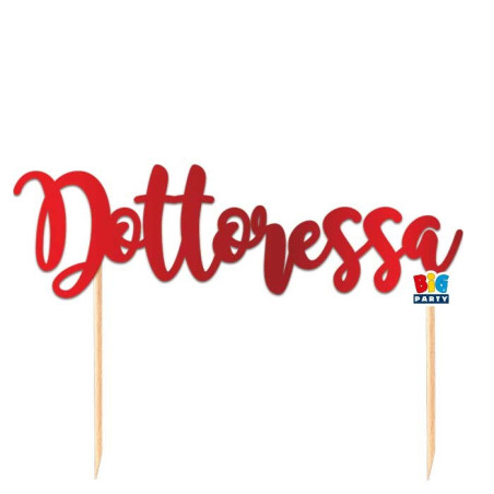 Pick Cake topper scitta DOTTORESSA in carta cartoncino - Colore ROSSO Lucido - per la LAUREA della LAUREATA ideale per decoro decorazioni torte e dolci - 20x14cm