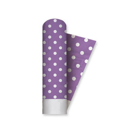 Tovaglia Rotolo Bianca con Fasce laterali Pois Lilla in CARTA DAMASCATA 5x1,20mt